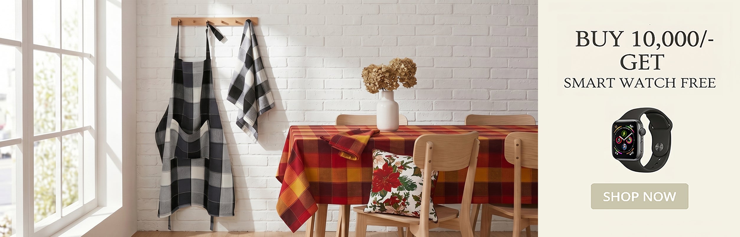 Buy cotton Xmas check free size apron with adjustable buckle online for festive cooking, baking, or household chores. Crafted from 100% cotton, this apron features a cheerful red and green...