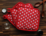 Buy cotton red polka dot kitchen towels pack of 4 online for a cheerful and functional kitchen accessory.