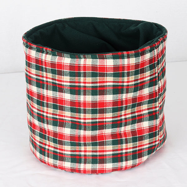 Buy cotton green with red check fruit basket online for stylish and festive storage.