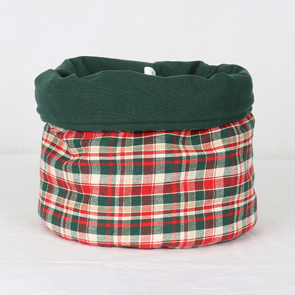 This basket features a classic red with black checkered design on soft cotton fabric. Perfect for holding fruits, dry snacks, or baked goods on your dining table. Foldable and machine washable for regular use in your kitchen or during holiday gatherings.