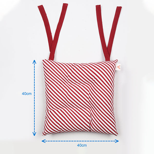 Buy cotton candy stripe maroon christmas pattern checked chair pads online to add comfort and a vibrant touch to your chairs. Made from 100% cotton, these pads feature a cheerful orange check pattern and soft filling for everyday seating comfort. Tie-back strings keep them securely in place, making them perfect for dining, study, or outdoor seating.