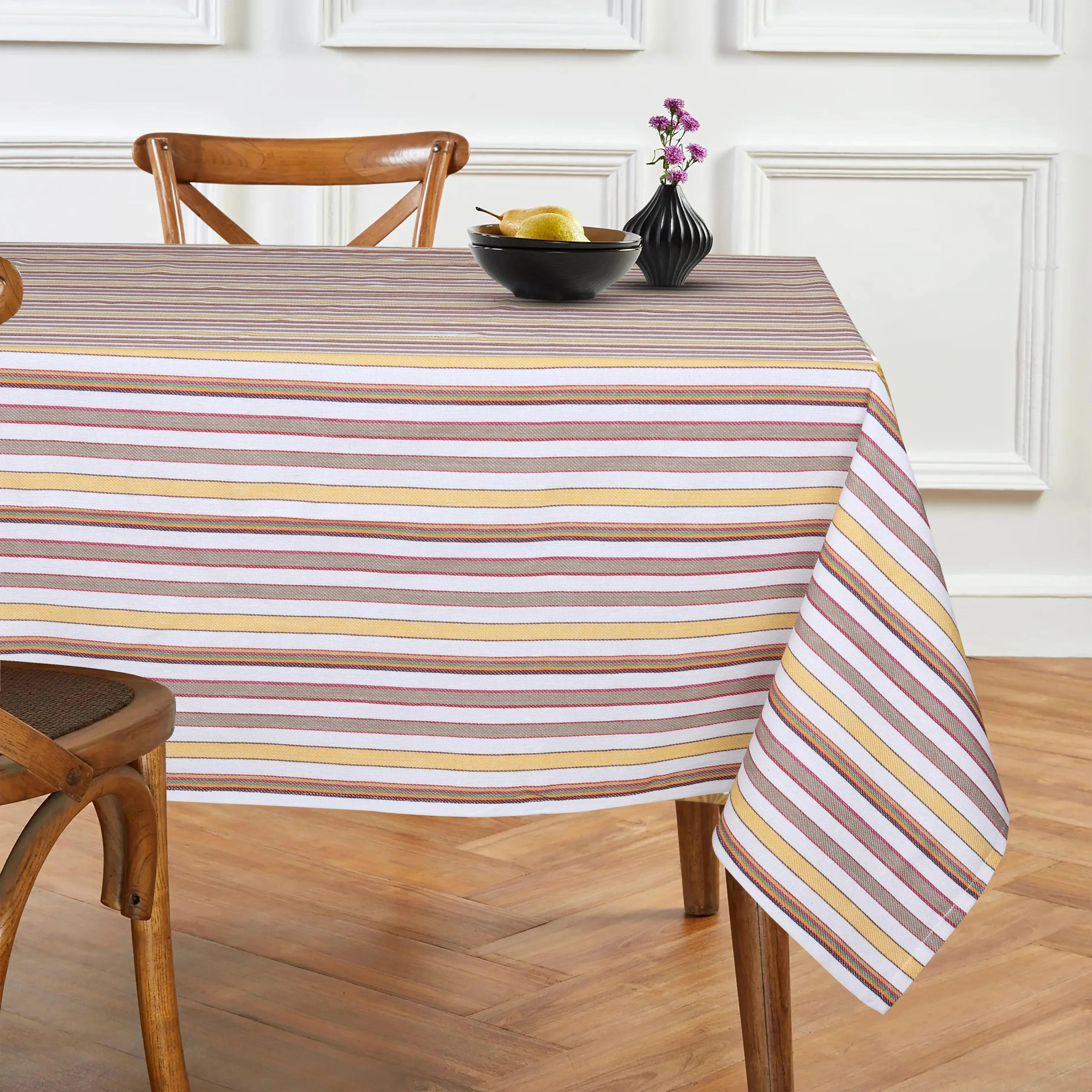 Buy cotton traditional striped 8 seater table cloth online to enhance your dining space with elegance and charm.