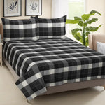 Buy cotton double checkered bedsheet set online to add bold contrast and everyday comfort to your bedroom. This pack includes three double bedsheets in a striking black checkered pattern, each paired with two matching pillow covers. Made from 100% cotton, these bedsheets are soft, breathable, and suitable for regular use. Durable and easy to maintain, this set is a perfect choice for modern homes or guest rooms.