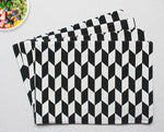 This runner features a black diamond check design woven into soft cotton, great for formal or everyday dining. Ideal for 4-seater settings