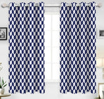 These 7ft curtains feature a regal blue tone and a classic diamond pattern. Made from breathable cotton, they are ideal for formal living areas or statement decor.
