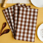 These covers feature a classic gingham check pattern in a rich brown tone—perfect for styling sofas, beds, or chairs in farmhouse, cottage, or earthy interiors.