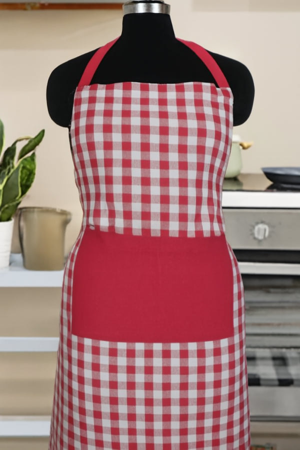Buy cotton gingham check pink with solid pocket free size apron online for a blend of charm and practicality.