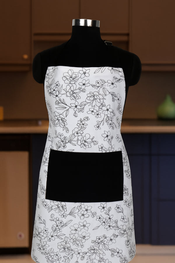 Made from 100% cotton, this apron features a creative pencil-style floral print with a solid pocket for added convenience. Lightweight and breathable, it protects your clothes from splashes and stains. Adjustable back ties and machine washable fabric make it ideal for everyday use.