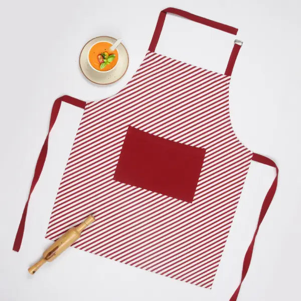 Made from 100% cotton, this apron features a classic red stripe design for a fresh, stylish look. Lightweight and breathable, it protects your clothes from everyday stains and splashes. Designed with adjustable back ties for a comfortable fit and easy machine wash care, it’s ideal for daily kitchen and household use.