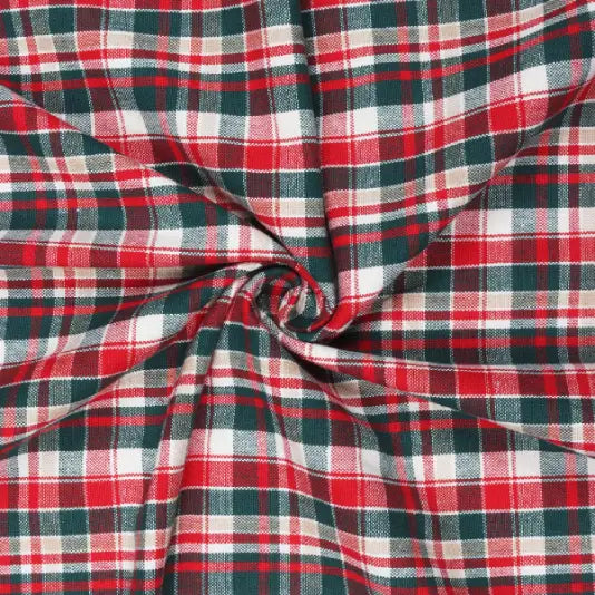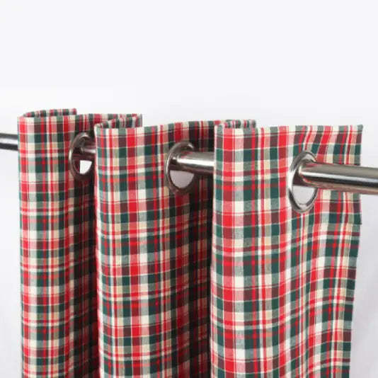 Cotton Christmas Check Green with Red 7ft Door Curtains Pack Of 2