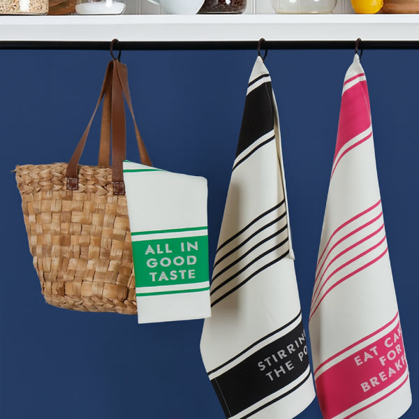 Cotton Kitchen Dish Towels pack of 3 - Pink, Black & Green
