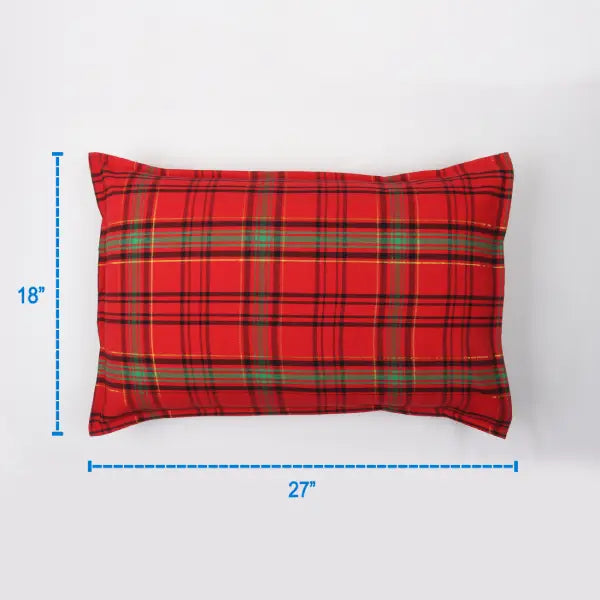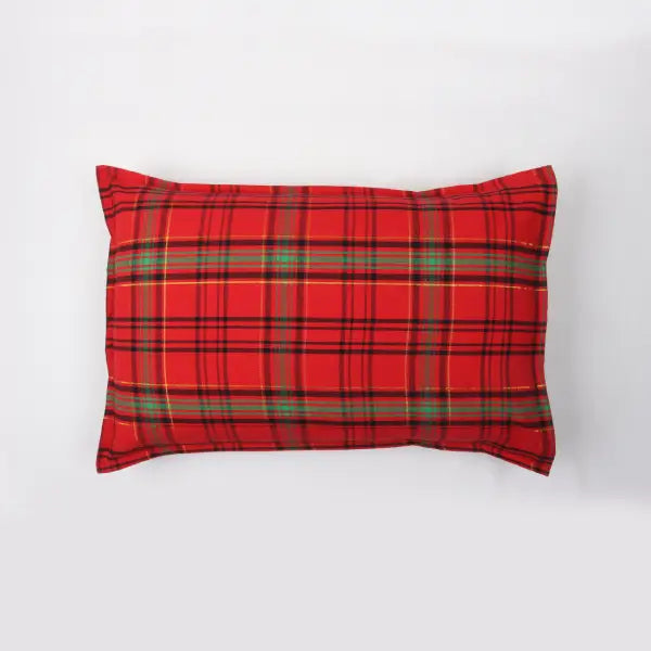 Cotton Xmas Check Orange Pillow Covers Pack Of 2