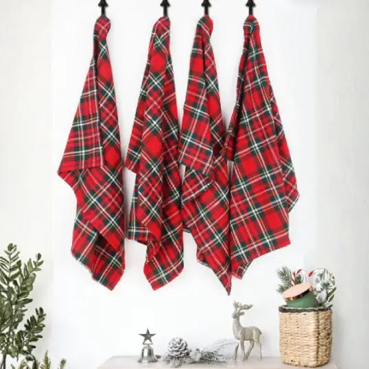 Buy cotton Xmas check red kitchen towels pack of 4 online to bring holiday spirit into your kitchen.