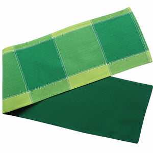 Buy cotton 4 way dobby green table runner online to give your table a rich, textured style. This runner is made of soft cotton with a dobby weave pattern in an...