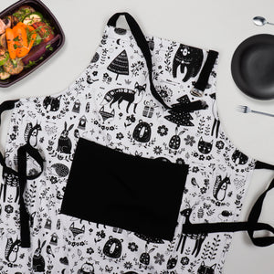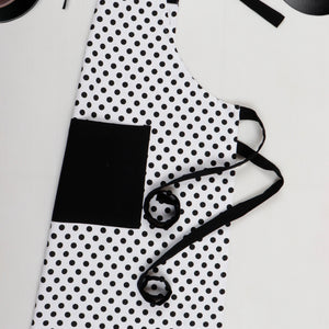 Cotton Black Polka Dot with Solid Pocket Free Size Apron