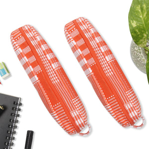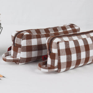 Cotton Checked Brown Pencil Pouches - Pack of 2 pcs