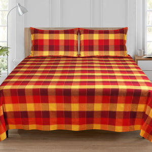 Cotton Checkered Bedsheet with Pillow Covers (Red, Yellow)