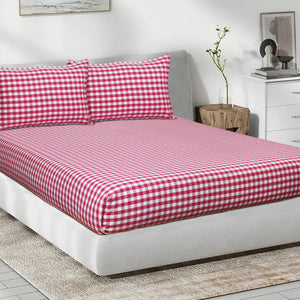 Cotton Checkered Bedsheet with Pillow Covers (Pink)