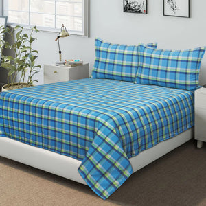 Cotton Dobby Checkered Bedsheet with Pillow Covers (Blue)