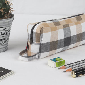 Cotton Checked Orange Pencil Pouches