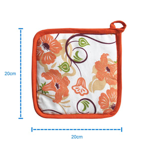 Cotton Green and Orange Flower Kitchen Towels Pack Of 4