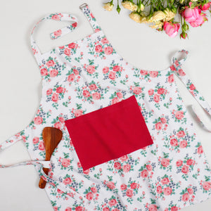 Cotton Small Pink Rose Flower Free Size Apron