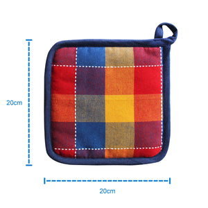 Cotton Adukalam Check With Blue Piping Pot Holders Pack Of 3