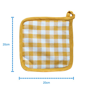 Cotton Gingham Check Yellow Pot Holders Pack Of 3