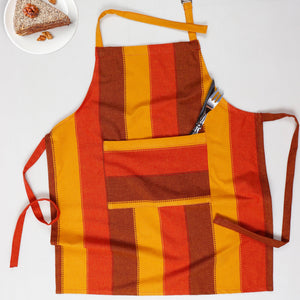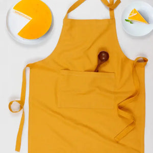 Cotton Green and Orange Flower With Yellow Solid Pocket Free Size Apron