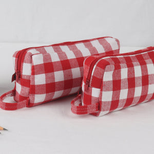 Cotton Red & White Checked Pencil Pouches - Pack of 2 pcs
