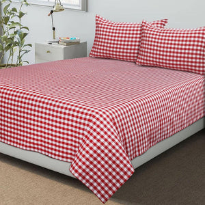 Cotton Checkered Bedsheet with Pillow Covers (Red)