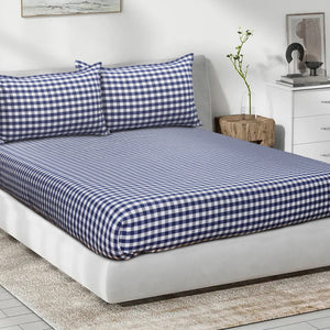 Cotton Double Checkered Bedsheet with 2 Pillow Covers (Pack of 3)