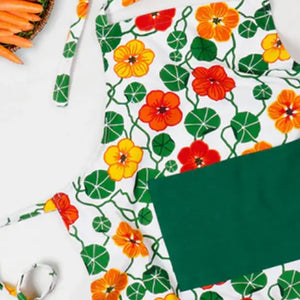 Cotton Green & Orange Flower with Green Solid Pocket Free Size Apron