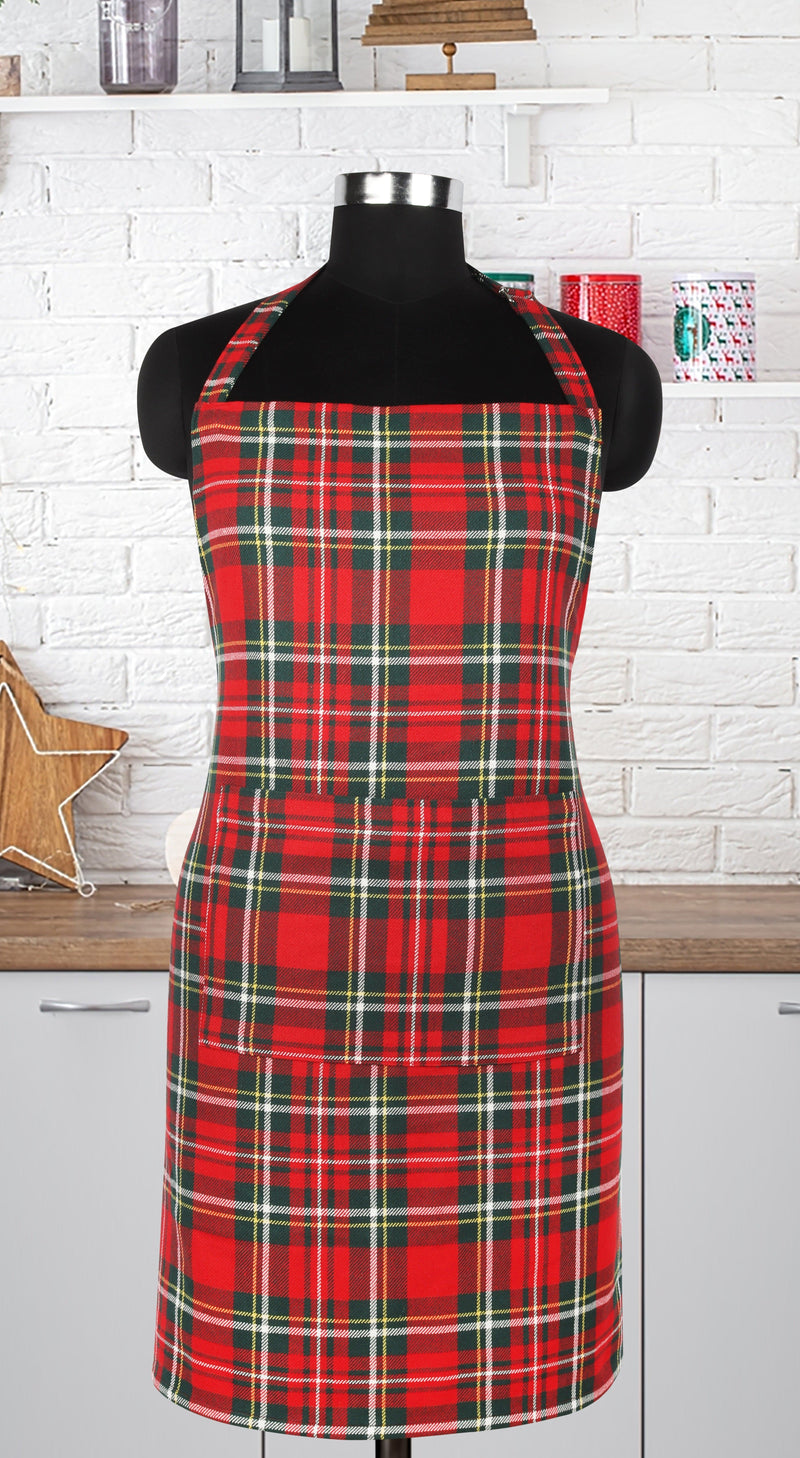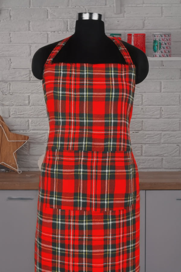 Buy cotton Xmas check free size apron with adjustable buckle online for festive cooking, baking, or household chores.