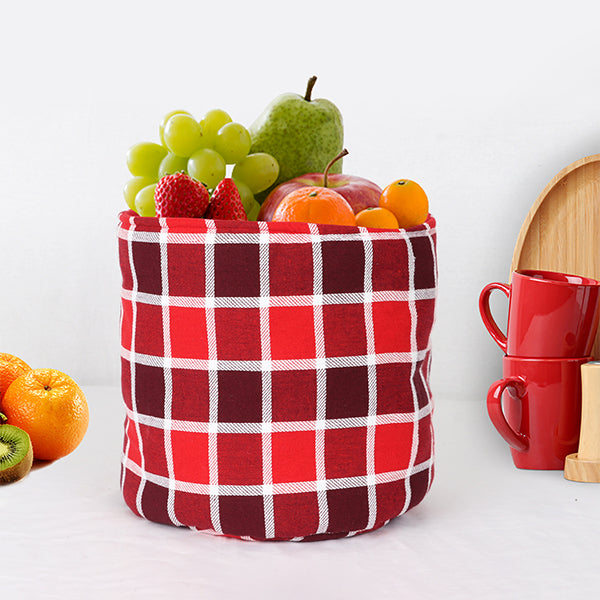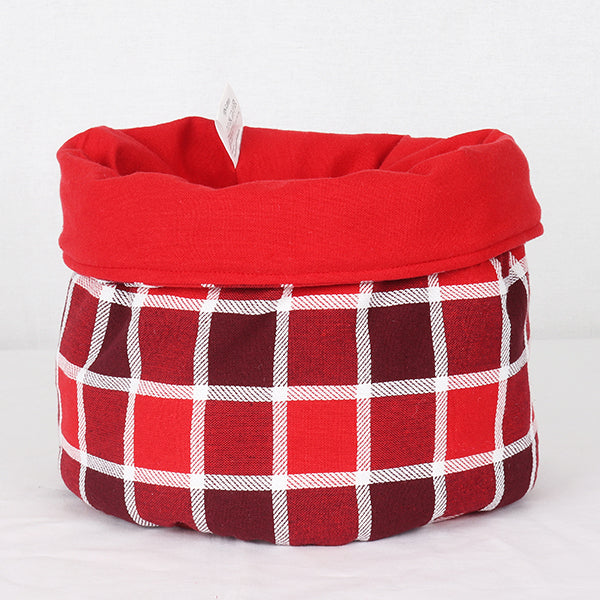 This basket features a classic red checkered design on soft cotton fabric. Perfect for holding fruits, dry snacks, or baked goods on your dining table. Foldable and machine washable for regular use in your kitchen or during holiday gatherings.