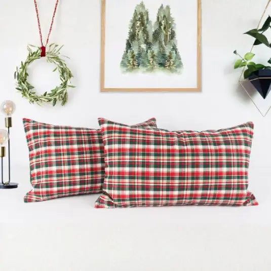 Cotton Christmas Check Green with Red Pillow Covers Pack Of 2