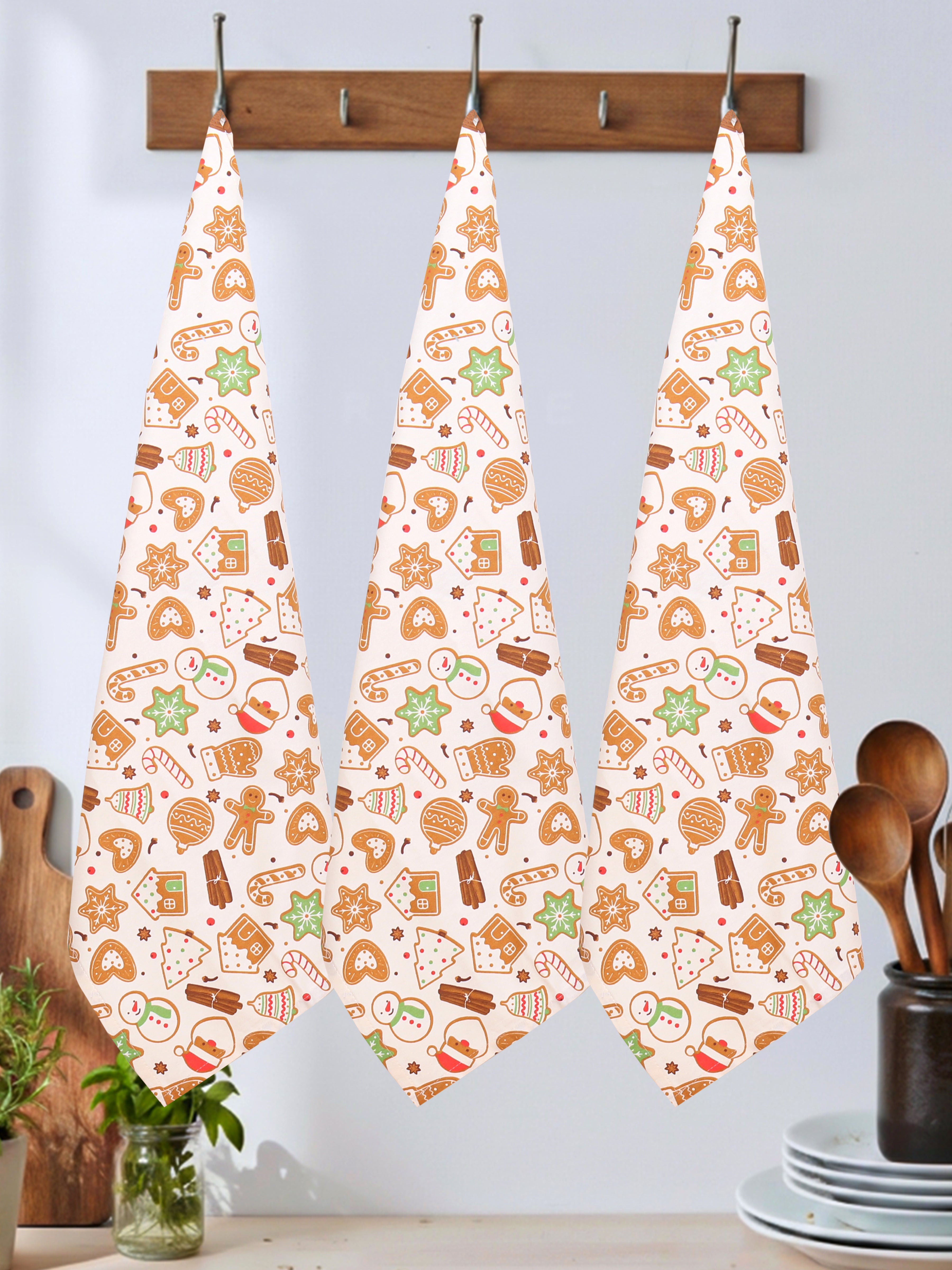 Cotton Christmas Printed Kitchen Towels Pack Of 3