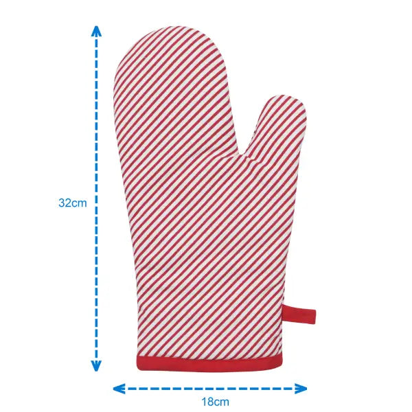 Cotton Xmas Candy Stripe Red Piping Oven Gloves Pack Of 2
