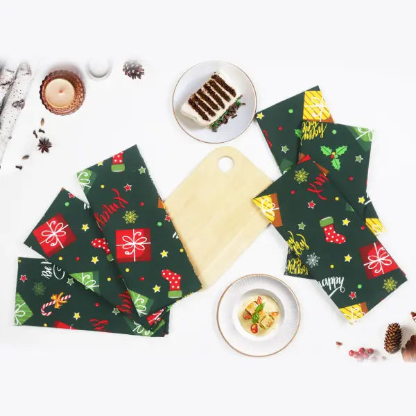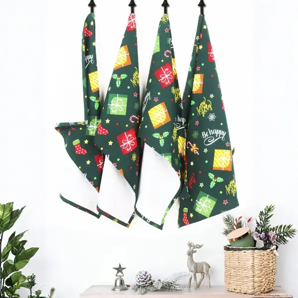 These towels feature a green Christmas-themed check pattern made from soft cotton, ideal for baking or festive decor. Reusable, absorbent, and machine washable for easy seasonal use.