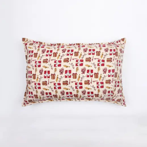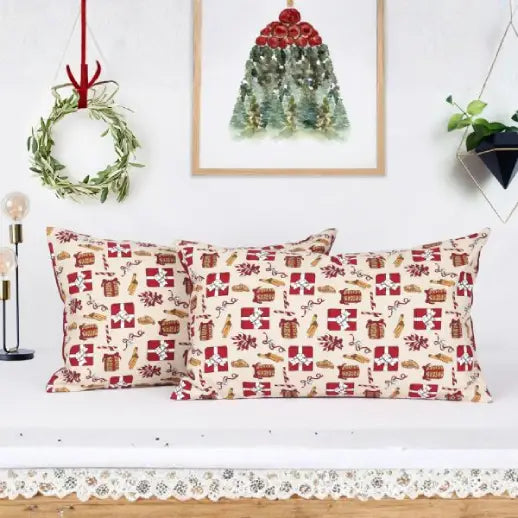 Cotton Xmas Gift Box Maroon Pillow Covers Pack Of 2