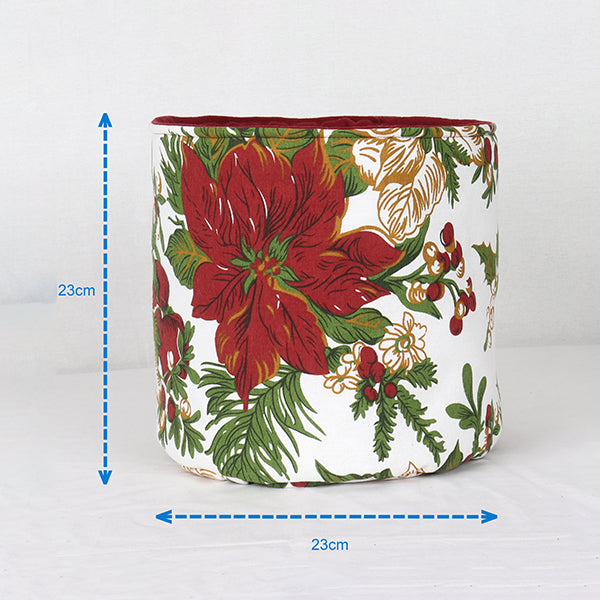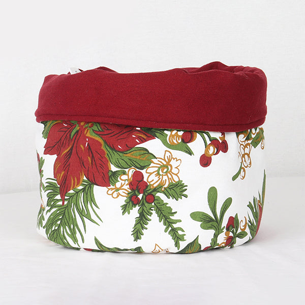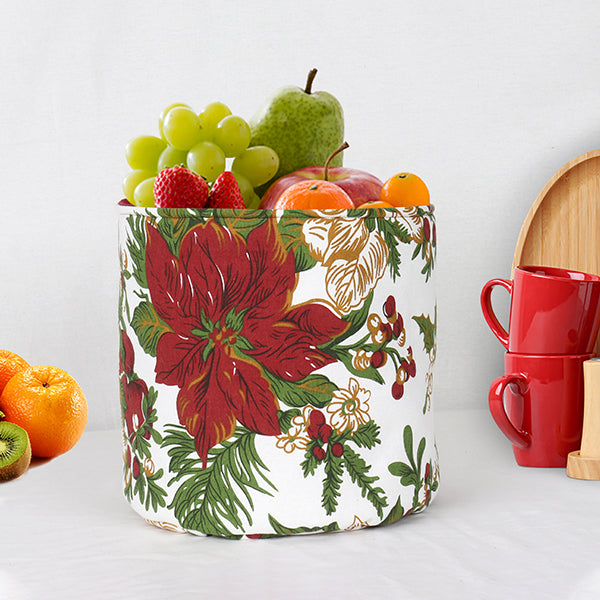 This basket features a classic maroon flower checkered design on soft cotton fabric. Perfect for holding fruits, dry snacks, or baked goods on your dining table. Foldable and machine washable for regular use in your kitchen or during holiday gatherings.