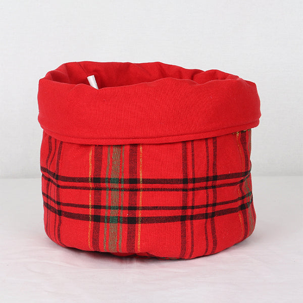 This basket features a classic solid green checkered design on soft cotton fabric. Perfect for holding fruits, dry snacks, or baked goods on your dining table. Foldable and machine washable for regular use in your kitchen or during holiday gatherings.
