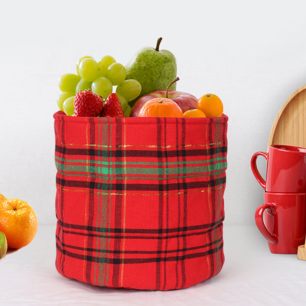 Buy cotton Orange check fruit basket online for stylish and festive storage.